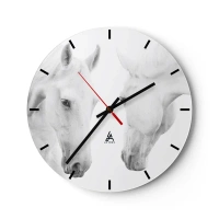 Ceas de perete - Ceas pe sticlă - Doi cai albi stând unul față în față pe un fundal alb - 30x30cm - Este aceasta o prietenie...? - Decorațiune modernă pentru perete pentru living, bucătărie și dormitor ARTTOR