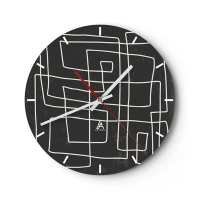 Ceas de perete - Ceas pe sticlă - Linii geometrice albe care formează o grilă complexă pe un fundal negru. - 30x30cm - Nu atât de simplu - Decorațiune modernă pentru perete pentru living, bucătărie și dormitor ARTTOR