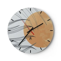 Ceas de perete - Ceas pe sticlă - Grafică cu un cerc portocaliu și linii de iarbă pe fundal - 30x30cm - Întotdeauna spre soare - Decorațiune modernă pentru perete pentru living, bucătărie și dormitor ARTTOR