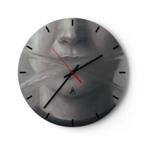 Ceas de perete - Ceas pe sticlă - Portret alb-negru cu gura acoperită cu o cruce de pensulă - 30x30cm - Nici un cuvânt - Decorațiune modernă pentru perete pentru living, bucătărie și dormitor ARTTOR
