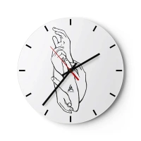 Ceas de perete - Ceas pe sticlă - O schiță delicată a două mâini împreunate pe un fundal alb - 30x30cm - Atingere bună - Decorațiune modernă pentru perete pentru living, bucătărie și dormitor ARTTOR