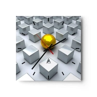 Ceas de perete - Ceas pe sticlă - De ce eu? Compoziție geometrică - 30x30 cm