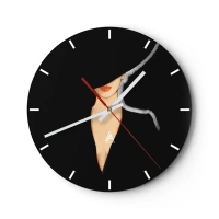 Ceas de perete - Ceas pe sticlă - Portretul unei femei cu o pălărie elegantă pe un fundal negru - 30x30cm - Eleganță și stil - Decorațiune modernă pentru perete pentru living, bucătărie și dormitor ARTTOR