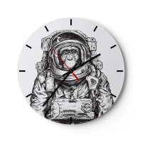 Ceas de perete - Ceas pe sticlă - O schiță alb-negru a unui astronaut maimuță. - 30x30cm - Evoluție alternativă - Decorațiune modernă pentru perete pentru living, bucătărie și dormitor ARTTOR