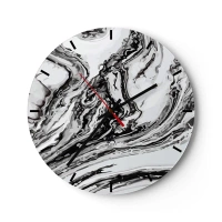 Ceas de perete - Ceas pe sticlă - Model abstract de marmură în alb și negru - 30x30cm - La început a fost haos - Decorațiune modernă pentru perete pentru living, bucătărie și dormitor ARTTOR