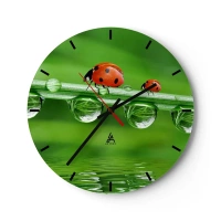 Ceas de perete - Ceas pe sticlă - Buburuze pe o fir de iarbă cu picături de apă - 30x30cm - Pe drum toată vara - Decorațiune modernă pentru perete pentru living, bucătărie și dormitor ARTTOR