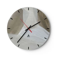 Ceas de perete - Ceas pe sticlă - O abstracție luminoasă cu tușe de alb și bej pe un fundal gri. - 30x30cm - Val de alb - Decorațiune modernă pentru perete pentru living, bucătărie și dormitor ARTTOR