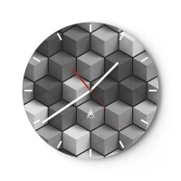 Ceas de perete - Ceas pe sticlă - Figuri cubice 3D într-un aranjament geometric - 30x30cm - Puzzle cubist - Decorațiune modernă pentru perete pentru living, bucătărie și dormitor ARTTOR