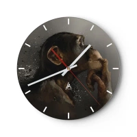 Ceas de perete - Ceas pe sticlă - Un cimpanzeu gânditor pe un fundal întunecat - 30x30cm - Cu siguranță, gânditorul - Decorațiune modernă pentru perete pentru living, bucătărie și dormitor ARTTOR
