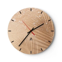Ceas de perete - Ceas pe sticlă - Prim-plan cu nisip auriu și valuri line ale mării - 30x30cm - Umbra unei veri fierbinți - Decorațiune modernă pentru perete pentru living, bucătărie și dormitor ARTTOR