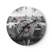 Ceas de perete - Ceas pe sticlă - Binoclu turistic îndreptat spre orizontul New York-ului - 30x30cm - Orașul de deasupra orașelor - Decorațiune modernă pentru perete pentru living, bucătărie și dormitor ARTTOR