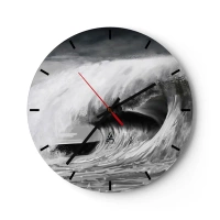 Ceas de perete - Ceas pe sticlă - Un val dinamic în nuanțe de alb și negru - 30x30cm - Mânia oceanului - Decorațiune modernă pentru perete pentru living, bucătărie și dormitor ARTTOR