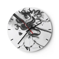 Ceas de perete - Ceas pe sticlă - Schiță alb-negru a unei femei elegante purtând ochelari și o pălărie. - 30x30cm - Dama cu caracter - Decorațiune modernă pentru perete pentru living, bucătărie și dormitor ARTTOR