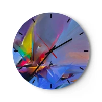 Ceas de perete - Ceas pe sticlă - Un joc abstract de culori și forme pe un fundal albastru - 30x30cm - Iute ca o pasăre - Decorațiune modernă pentru perete pentru living, bucătărie și dormitor ARTTOR