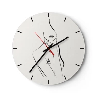 Ceas de perete - Ceas pe sticlă - Conturul feței unei femei în stil artistic liniar pe un fundal deschis - 30x30cm - Dintr-o grădină engleză - Decorațiune modernă pentru perete pentru living, bucătărie și dormitor ARTTOR