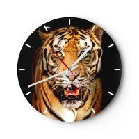 Ceas de perete - Ceas pe sticlă - Portretul unui tigru feroce cu o privire intensă - 30x30cm - Sălbăticia inimii - Decorațiune modernă pentru perete pentru living, bucătărie și dormitor ARTTOR