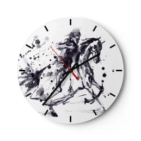 Ceas de perete - Ceas pe sticlă - Călăreț în acuarelă alb-negru - 30x30cm - Cavalerul negru - Decorațiune modernă pentru perete pentru living, bucătărie și dormitor ARTTOR