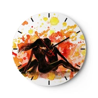 Ceas de perete - Ceas pe sticlă - O scenă de dragoste artistică în culori de acuarelă - 30x30cm - Şi a fost lumină - Decorațiune modernă pentru perete pentru living, bucătărie și dormitor ARTTOR