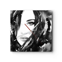 Ceas de perete - Ceas pe sticlă - Studiu unei dame în alb și negru - 30x30 cm