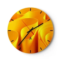 Ceas de perete - Ceas pe sticlă - Forme aurii abstracte care seamănă cu valuri de lumină - 30x30cm - Ca niște valuri de soare - Decorațiune modernă pentru perete pentru living, bucătărie și dormitor ARTTOR