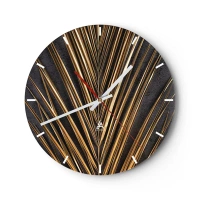 Ceas de perete - Ceas pe sticlă - Frunze de palmier aurii pe un fundal întunecat - 30x30cm - Aur tropical - Decorațiune modernă pentru perete pentru living, bucătărie și dormitor ARTTOR