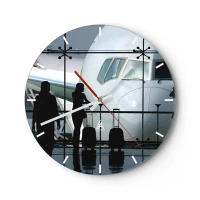 Ceas de perete - Ceas pe sticlă - Aeroport cu vedere la avion și pasageri - 30x30cm - Vis a vis la aeroport - Decorațiune modernă pentru perete pentru living, bucătărie și dormitor ARTTOR