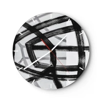 Ceas de perete - Ceas pe sticlă - Tușe dinamice negre de pensulă care creează modele tridimensionale - 30x30cm - Construind adâncimea - Decorațiune modernă pentru perete pentru living, bucătărie și dormitor ARTTOR