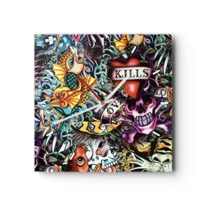 Ceas de perete - Ceas pe sticlă - Visul unui artist tatuator - 30x30 cm