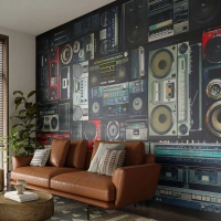 Tapet Premium Sand - Nostalgie pentru anii `80. - Casetofon, Amplificator muzical, Echipament muzical de epocă - 100x70 cm