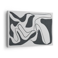 Tablou pe pânză Canvas - Abstracție alb-negru cu forme organice - 70x50cm - Distracție abstractă în labirint - Decorațiune modernă pentru perete pentru living și dormitor ARTTOR
