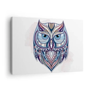 Tablou pe pânză Canvas - Bufniță geometrică în nuanțe de albastru și bej - 70x50cm - Bufniță ornamentală artistică - Decorațiune modernă pentru perete pentru living și dormitor ARTTOR