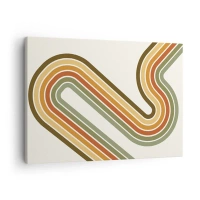 Tablou pe pânză Canvas - Model geometric în nuanțe de verde, portocaliu și bej pe un fundal deschis - 70x50cm - Cu zigzag până la destinație - Decorațiune modernă pentru perete pentru living și dormitor ARTTOR
