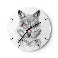 Ceas de perete - Ceas pe sticlă - Schiță alb-negru a unui cap de lup pe fundal alb - 30x30cm - Un lider înnăscut - Decorațiune modernă pentru perete pentru living, bucătărie și dormitor ARTTOR
