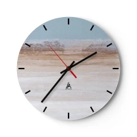Ceas de perete - Ceas pe sticlă - Peisaj pastel cu dungi orizontale de albastru și bej. - 30x30cm - Un peisaj ambiguu - Decorațiune modernă pentru perete pentru living, bucătărie și dormitor ARTTOR