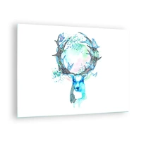 Tablou pe sticlă - Cerb cu o coroană de flori și pene - 70x50cm - Ghidul sufletului - blând, inocent - Decorațiune modernă pentru perete pentru living și dormitor ARTTOR
