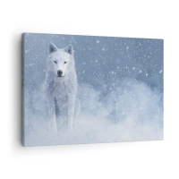 Tablou pe pânză Canvas - Lup alb într-un peisaj înzăpezit - 70x50cm - În stil de iarnă - Decorațiune modernă pentru perete pentru living și dormitor ARTTOR