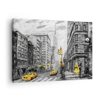 Tablou pe pânză Canvas - Stradă din New York cu accente galbene - 70x50cm - O poveste din New York - Decorațiune modernă pentru perete pentru living și dormitor ARTTOR