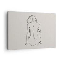 Tablou pe pânză Canvas - O schiță subtilă a siluetei unei fete din spate - 70x50cm - Nud de fată - Decorațiune modernă pentru perete pentru living și dormitor ARTTOR