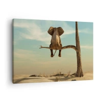 Tablou pe pânză Canvas - Un elefant așezat pe o creangă, cu vedere la un peisaj deșertic - 70x50cm - Un nou punct de vedere - Decorațiune modernă pentru perete pentru living și dormitor ARTTOR
