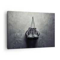 Tablou pe pânză Canvas - Mănuși de box vechi pe perete - 70x50cm - Timp de luptă și timp de pace - Decorațiune modernă pentru perete pentru living și dormitor ARTTOR