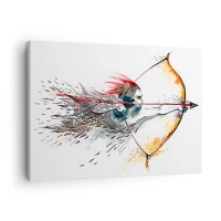 Tablou pe pânză Canvas - Pictură dinamică în acuarelă a unui războinic cu arc și săgeată - 70x50cm - Războinic mitic cu un arc de foc - Decorațiune modernă pentru perete pentru living și dormitor ARTTOR