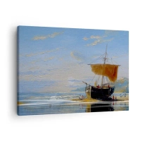 Tablou pe pânză Canvas - O navă pe malul mării într-o zi însorită - 70x50cm - Apă, pământ, aer - Decorațiune modernă pentru perete pentru living și dormitor ARTTOR