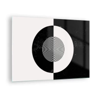 Tablou pe sticlă - Model geometric de simetrie alb-negru - 70x50cm - Armonie în alb și negru - Decorațiune modernă pentru perete pentru living și dormitor ARTTOR
