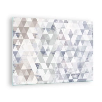 Tablou pe sticlă - Model geometric triunghiular în nuanțe neutre de gri și bej - 70x50cm - În ritm de trei - Decorațiune modernă pentru perete pentru living și dormitor ARTTOR