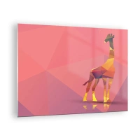 Tablou pe sticlă - Girafă geometrică pe un fundal pastel - 70x50cm - În culorile savanei - Decorațiune modernă pentru perete pentru living și dormitor ARTTOR