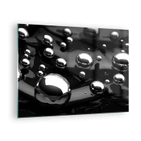 Tablou pe sticlă - Picături metalice pe o suprafață neagră - 70x50cm - Din adâncurile negre - Decorațiune modernă pentru perete pentru living și dormitor ARTTOR
