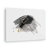 Tablou pe sticlă - Compoziție abstractă de negru și auriu pe fundal alb - 70x50cm - Negru și aur - Decorațiune modernă pentru perete pentru living și dormitor ARTTOR