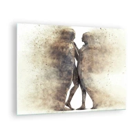 Tablou pe sticlă - Siluete abstracte a două figuri într-un stil prăfuit - 70x50cm - Din praf s-au ridicat la iubire - Decorațiune modernă pentru perete pentru living și dormitor ARTTOR