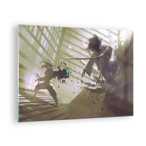 Tablou pe sticlă - Duel de samurai într-o scenă dinamică - 70x50cm - Și tu poți fi samurai - Decorațiune modernă pentru perete pentru living și dormitor ARTTOR