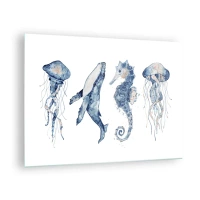 Tablou pe sticlă - Creaturi marine într-un stil delicat de acuarelă - 70x50cm - Fauna marină sălbatică - Decorațiune modernă pentru perete pentru living și dormitor ARTTOR
